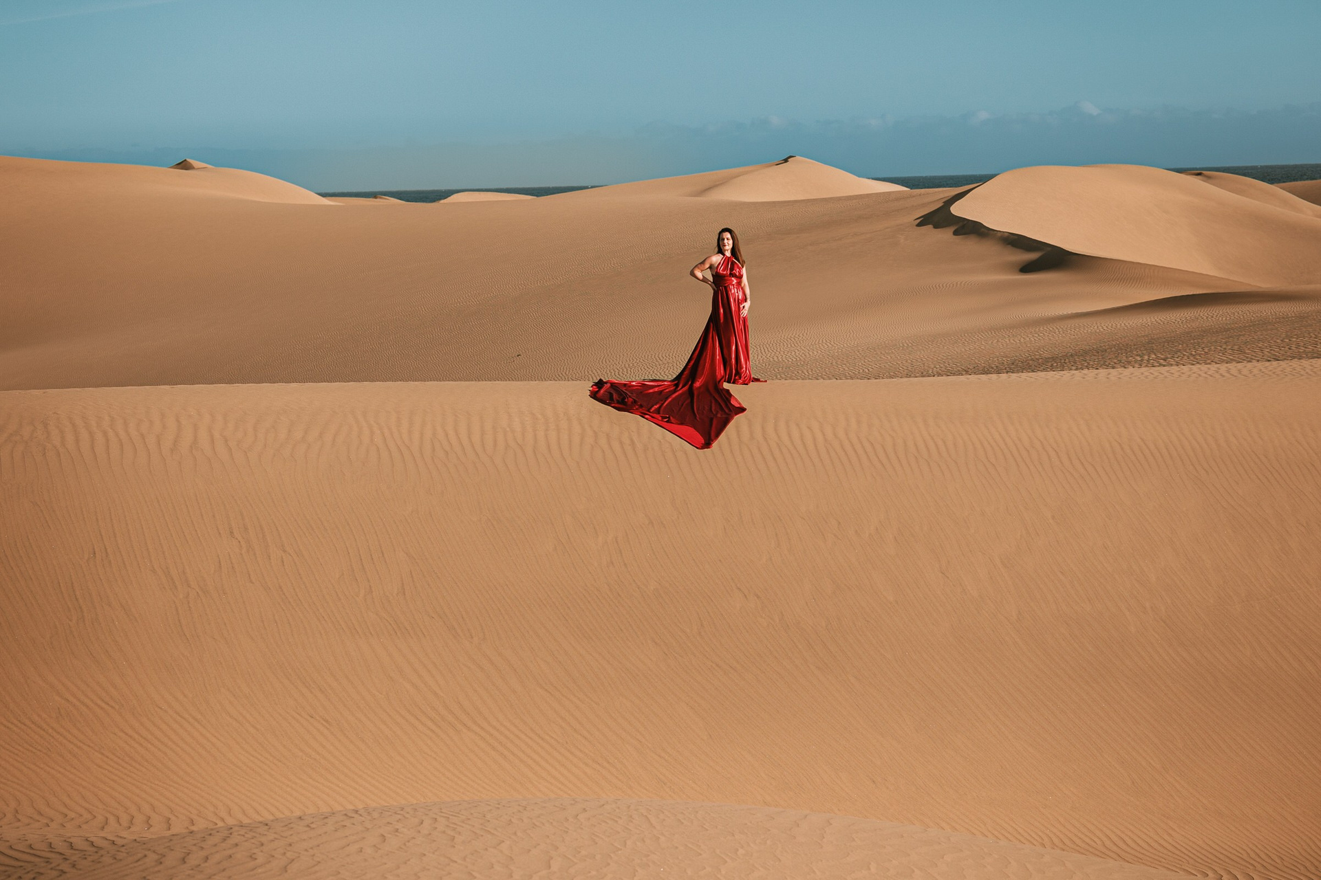 Maspalomas Dunes Photoshoot in Gran Canaria Red Dress